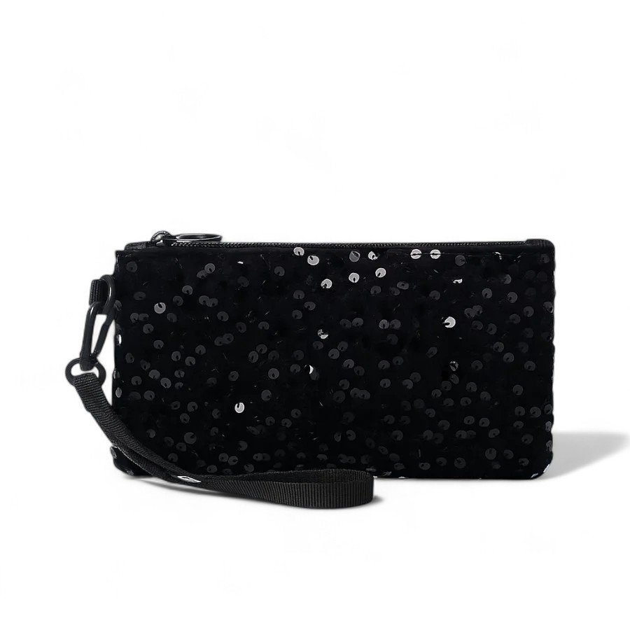✨ Dale un toque de brillo a tu look con este clutch negro de lentejuelas. Ideal para salidas, fiestas o cualquier ocasión especial. Con correa de muñeca y cierre seguro, ¡perfecto para llevar lo esencial con estilo!