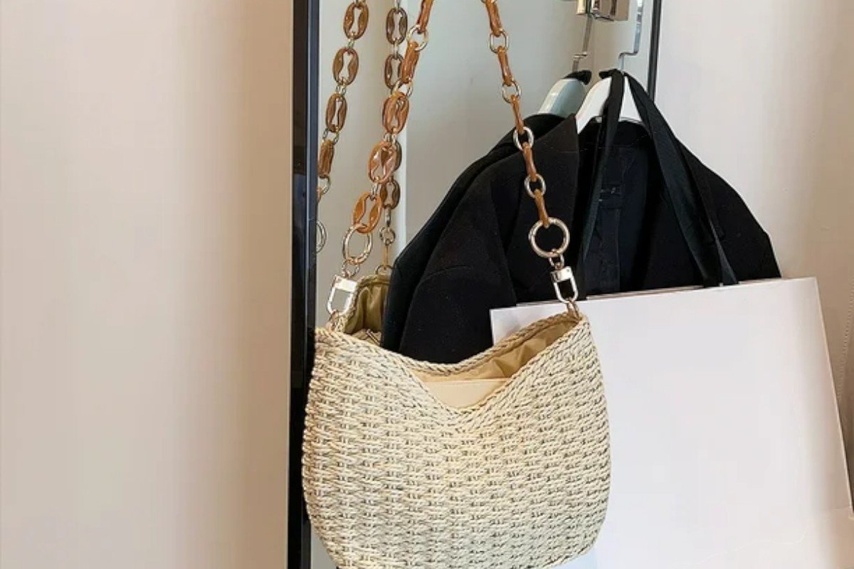 Luce fresca, libre y siempre a la moda con este bolso cruzado de verano en color beige claro, ideal para chicas que adoran los días de sol, escapadas a la playa y looks con rollito boho. Su diseño trenzado y su asa de eslabones efecto carey lo convierten en un must-have para esta temporada. Perfecto para acompañarte en vacaciones, paseos o simplemente para dar un toque cool a tu día a día.