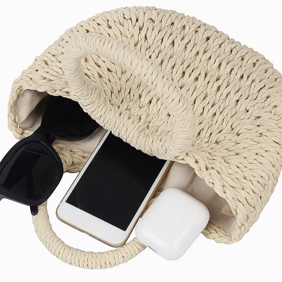 - 🌾 Diseño natural tejido: fabricado en cuerda de papel resistente y con forma semicírculo para un estilo relajado y a la moda.