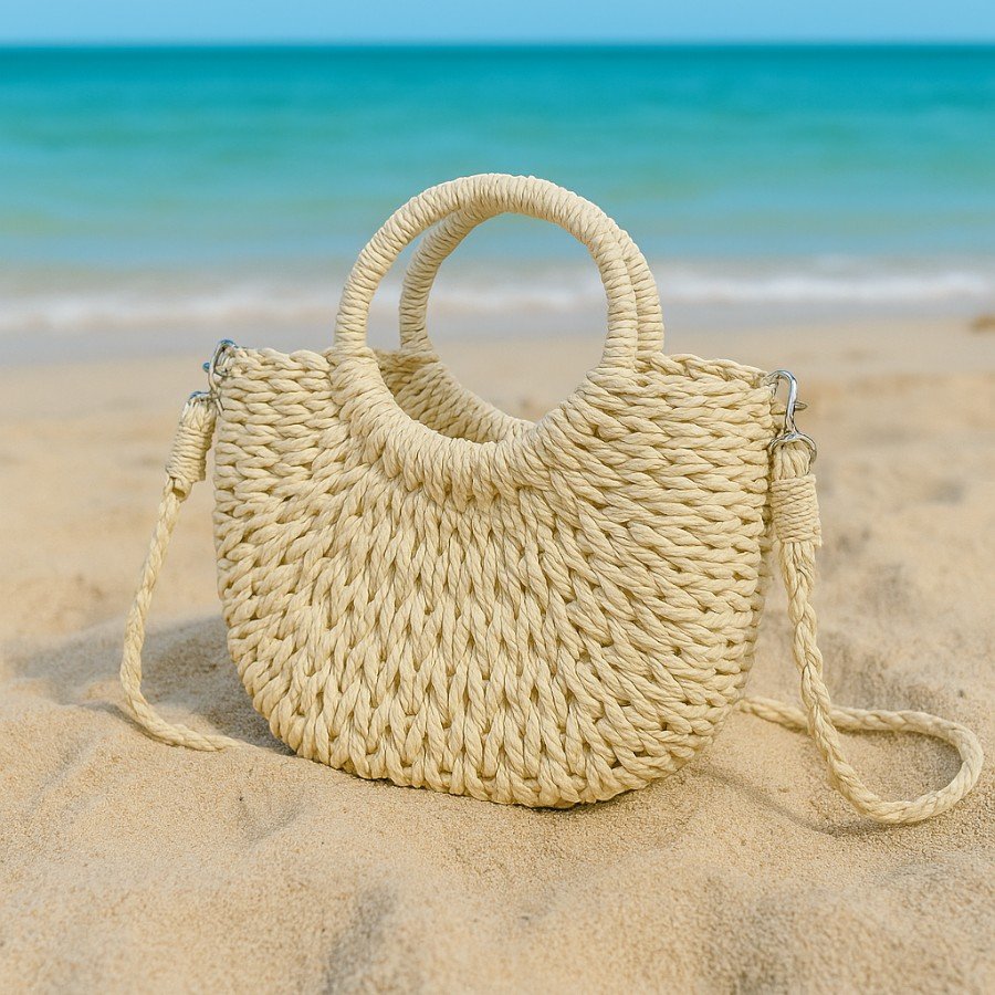 Dale un toque boho-chic a tu look con este bolso cruzado en forma de semicírculo, ideal para tus días de verano, escapadas a la playa o paseos urbanos. Con su diseño artesanal y vibe natural, este bolso será tu nuevo crush de temporada. Ligero, cómodo y con el tamaño justo para llevar lo esencial, es perfecto para chicas como tú, que buscan estilo sin complicaciones.