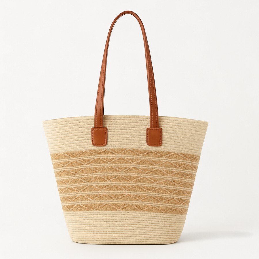 • 👜 Bolso de hombro de paja natural: diseño ligero y veraniego con asas de efecto cuero en color camel. Con cierre de cremallera para mayor seguridad.